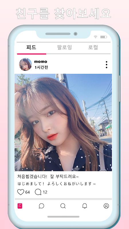 친해지고 싶은 회원을 팔로우 하고 메세지를 주고받으면서 친구를 만들 수 있습니다.