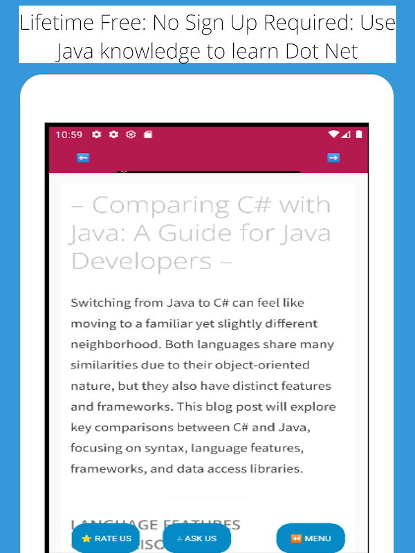 Cho dù bạn là nhà phát triển Java dày dạn kinh nghiệm hay mới bắt đầu, ứng dụng của chúng tôi sẽ giúp bạn chuyển đổi sang .NET Core một cách nhanh chóng và hiệu quả. Với hướng dẫn rõ ràng, ví dụ thực tế và sơ đồ hữu ích, bạn sẽ có được sự hiểu biết vững chắc về .NET Core và nâng cao kỹ năng lập trình của mình.