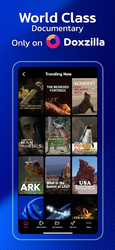 Bạn muốn biết? Phải biết. Bạn muốn xem? Phải xem. Trải nghiệm mới, xem phim tài liệu tại Doxzilla, Phim tài liệu trực tuyến, Cập nhật hàng tuần, Xem mọi lúc, mọi nơi, mọi Gen, Phim tài liệu không giới hạn trên di động, máy tính bảng, máy tính và TV. Đối với những người yêu thích phim tài liệu, đừng bỏ lỡ! Vui vẻ, thú vị và thỏa mãn với nhiều thể loại phim tài liệu khác nhau. Cuộc sống hoang dã, Thiên nhiên, Khoa học & Không gian, Lịch sử, Văn hóa, Khảo cổ học, Bí ẩn, Du lịch, Ẩm thực và hơn thế nữa, chỉ có tại Doxzilla.