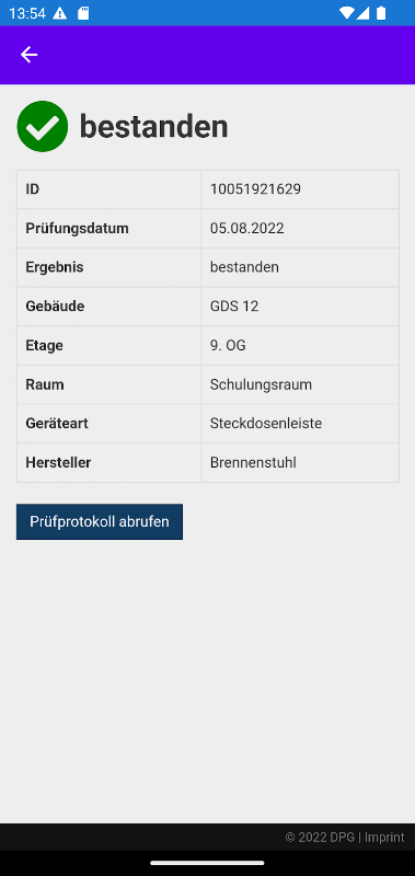 Bạn có phải là người liên hệ chịu trách nhiệm về DPG - Deutsche Elektro Prüfgesellschaft mbH trong lĩnh vực an toàn lao động và bạn có quyền truy cập vào cổng thông tin trực tuyến của chúng tôi không? Sau đó, bạn cũng có tùy chọn xem ngay tất cả các chi tiết của các bài kiểm tra dưới dạng nhật ký kiểm tra trực tiếp trên thiết bị di động của bạn