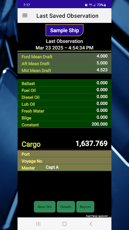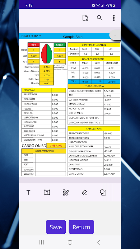 Ứng dụng này giải thích hoạt động của Khảo sát dự thảo bằng cách sử dụng một con tàu duy nhất có tên là Tàu mẫu. Nó được giới hạn ở một con tàu. Nó thể hiện ngữ nghĩa và các phép tính liên quan đến việc lấy số lượng hàng hóa trên tàu.