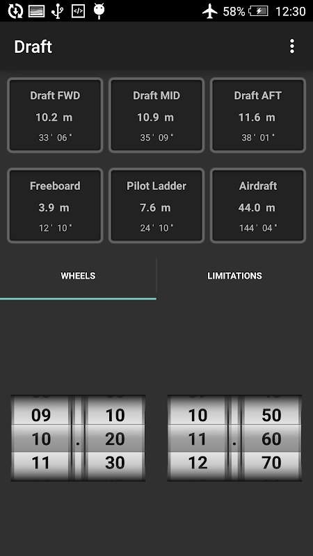 Draft calculator serves to convert ships draft from inches to metric system . App calculates freeboard, draft amidship and airdraft.