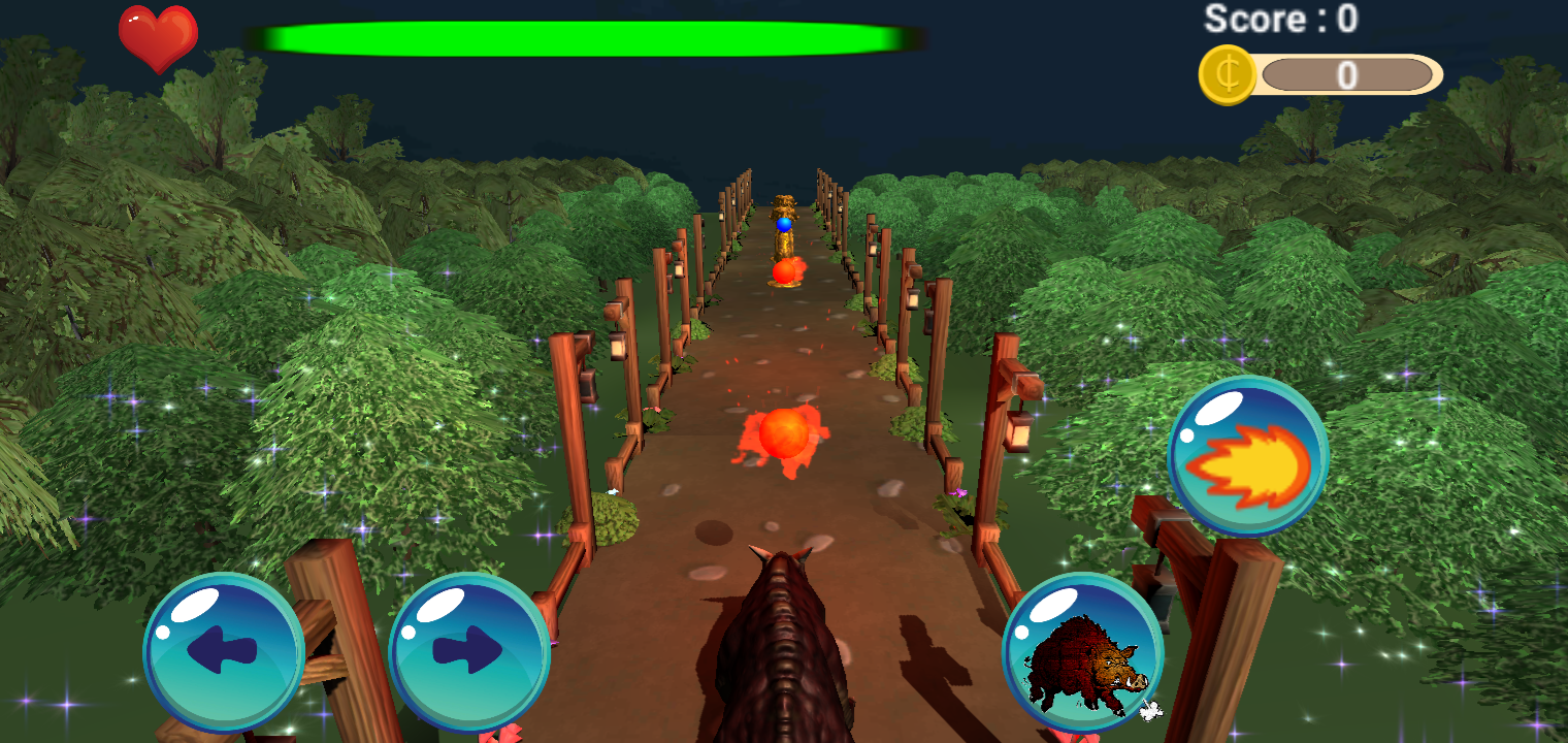 Drive and navigate your Dragon Boar or Flying Dragon through the path while managing to avoid obstacles and various other hazards. You decide how you want to play. Avoid hitting Obstacles and other flying Fireballs and IceBalls and choose your Dragon Type each with their own unique capabilities.
