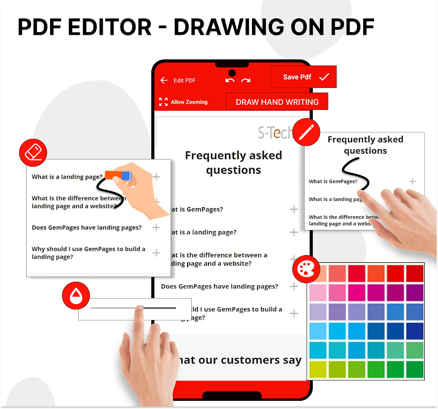 Ngày nay, tài liệu pdf là tài liệu được sử dụng nhiều nhất trên thế giới, vì vậy bạn cần chỉnh sửa và sửa đổi nội dung của tài liệu PDF, vẽ trên PDF, chỉnh sửa tài liệu pdf, sao chép nội dung từ pdf và nhiều tính năng khác, chúng tôi mang đến những công cụ tuyệt vời như vậy Chỉnh sửa pdf - Vẽ trên ứng dụng PDF Android thông qua đó bạn có thể dễ dàng chỉnh sửa tài liệu pdf hoặc vẽ bất cứ thứ gì trên tài liệu pdf. Vẽ trên tệp PDF là một tính năng thú vị để vẽ hình trên tài liệu pdf gạch chân văn bản trên pdf và sao chép nội dung văn bản từ tệp pdf.
