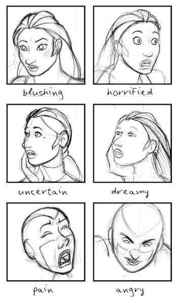 Thực tế ai cũng có thể vẽ mặt. Bạn tạo một vòng tròn với một vài điểm và đường thẳng và bất cứ ai nhìn thấy nó sẽ nói rằng đó là một khuôn mặt. Nhưng, giống như cách mà một thứ gì đó dễ xây dựng, nó cũng có thể khó khăn khi xử lý cảm xúc và cảm xúc. Các nhà làm phim hoạt hình chuyên nghiệp thường sử dụng gương để tự tạo mô hình khi họ vẽ các biểu hiện của nếp nhăn và nụ cười trên nhân vật của họ.
