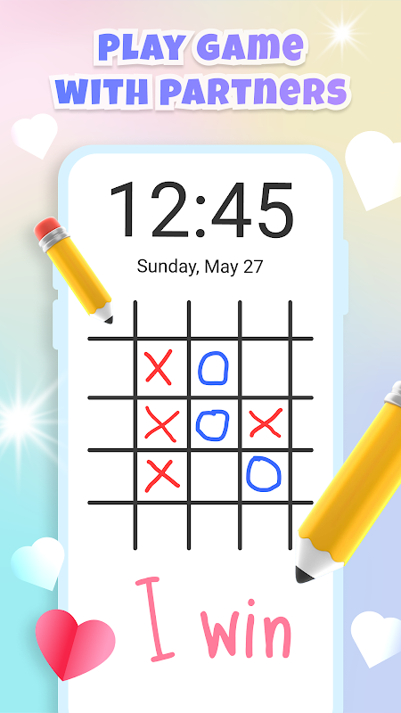Thách thức đối tác hoặc bạn bè của bạn bằng trò chơi Tic-Tac-Toe trên màn hình khóa của bạn. Thêm chút thú vị và phấn khích vào bản vẽ trên màn hình khóa của bạn bằng trò chơi cổ điển này.