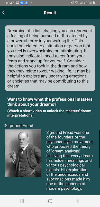Dream Discover là một ứng dụng giải đoán giấc mơ tiên tiến sử dụng công nghệ AI tiên tiến để giúp người dùng hiểu sâu hơn về giấc mơ của họ. Với ứng dụng này, người dùng có thể nhập nội dung giấc mơ của mình và chọn từ nhiều tùy chọn nhân vật nổi tiếng, bao gồm Lão Tử, Khổng Tử và Sigmund Freud, để đưa ra những quan điểm khác nhau về ý nghĩa giấc mơ của họ.