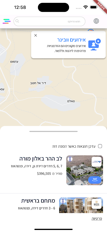 Ứng dụng BMBY DREAMS, bao gồm các dự án bất động sản trên bản đồ Israel
