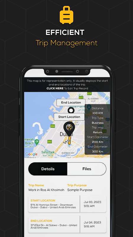 Quản lý chuyến đi: Ghi lại các chuyến đi với điểm bắt đầu và điểm kết thúc, bao gồm cả thời gian nghỉ, để tính toán chính xác thời lượng chuyến đi.