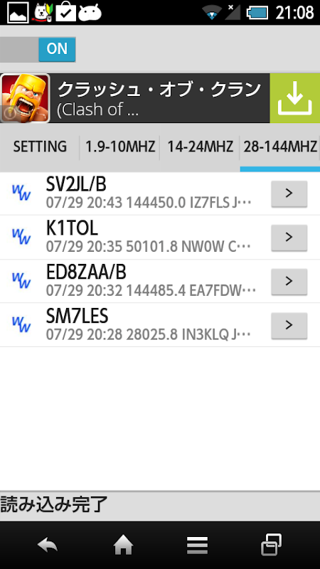 Then you can turn the switch ON then Droid DX cluster will be connected to the cluster server.