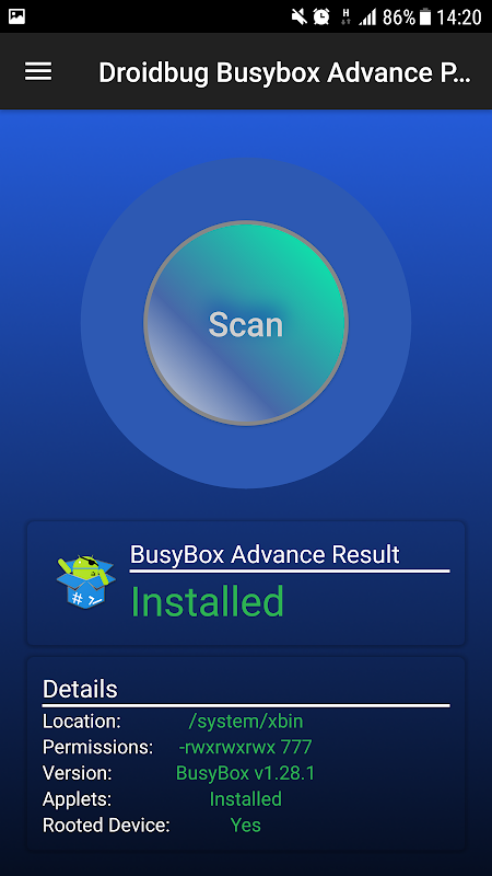 Droidbug BusyBox Advance combines tiny versions of ARM common UNIX utilities into a single small executable. It provides minimalist replacements for most of the utilities you usually find in GNU coreutils, util-linux, etc. The utilities in Droidbug BusyBox Advance generally have fewer options than their full-featured GNU cousins; however, the options that are included provide the expected functionality and behave very much like their GNU counterparts.