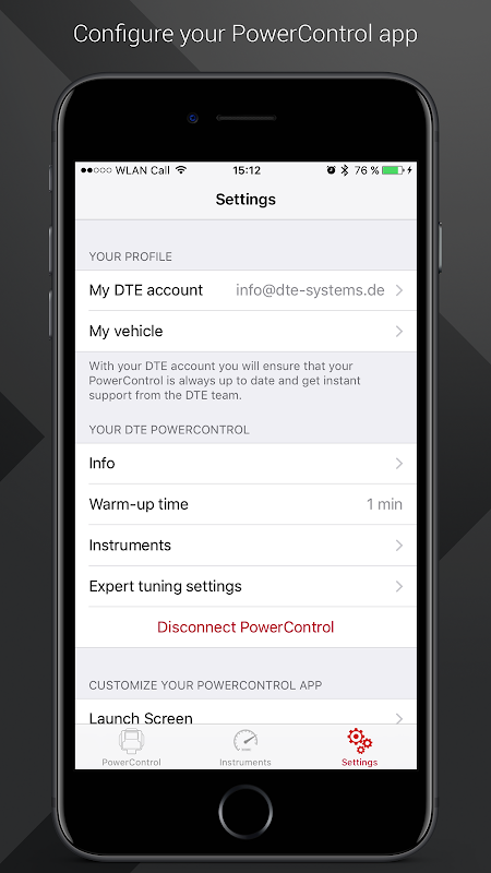- Kết nối điện thoại thông minh của bạn trực tiếp với module chỉnh DTE PowerControl của bạn