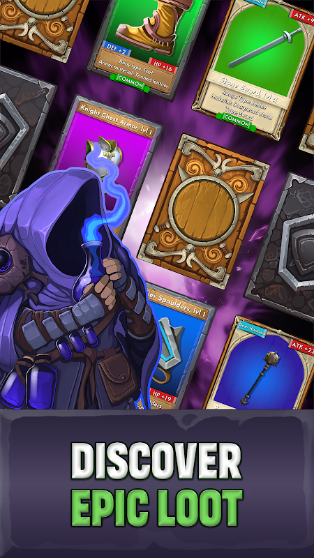 Trò chơi bài theo phong cách ngục tối và rồng kết hợp với trò chơi nhập vai roguelike khi bạn làm chủ bộ bài của mình bằng chiến lược, vật phẩm và trang bị. Chiến đấu với kẻ thù bằng hệ thống nhấp chuột chạm. Những người chơi nhập vai theo phong cách ngục tối và rồng sẽ không muốn bỏ lỡ trò chơi nhấp chuột theo phong cách ngục tối và rồng này.