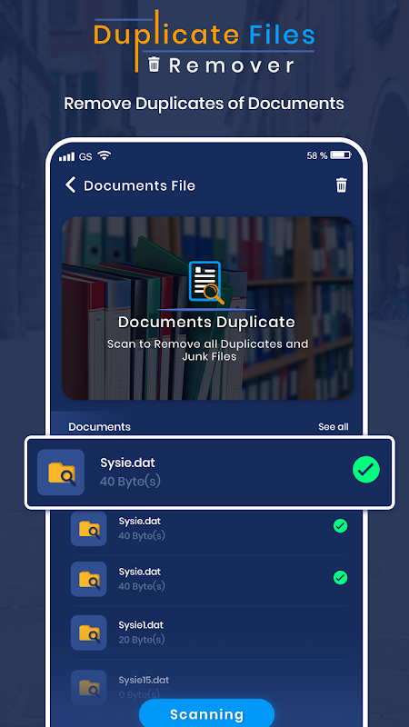 Các tập tin trùng lặp của tập tin Finder tìm và xóa các tập tin trùng lặp (Ảnh, Video, tập tin rác, tài liệu và nhiều hơn nữa) khỏi thiết bị của bạn để bạn có thể phục hồi không gian lưu trữ bổ sung mà không cần phải quảng cáo nhiều. Hơn nữa, trình dọn dẹp ảnh tương tự, tính năng mới nhất được thêm vào ứng dụng cũng sẽ loại bỏ các ảnh tương tự.
