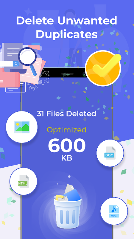 Công cụ tìm tệp trùng lặp và xóa tệp tương tự giúp điện thoại của bạn không bị dính tất cả các loại tệp PDF trùng lặp và không cần thiết, đồng thời xóa tệp PDF trùng lặp khỏi điện thoại di động của bạn. Trình sửa tệp trùng lặp nâng cao khả năng lưu trữ điện thoại của bạn một cách rất dễ dàng.