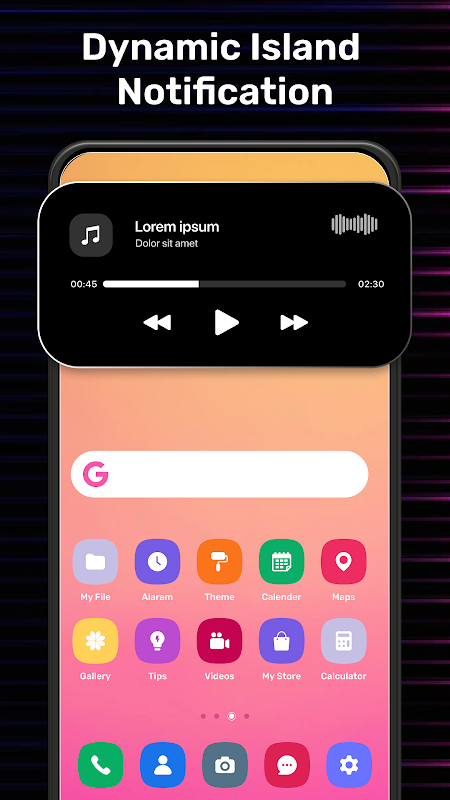 Mang tính năng Đảo động từ điện thoại 14 ưu điểm đến điện thoại thông minh Android của bạn bằng ứng dụng màn hình notch. Với sự trợ giúp của thanh khía Phone X, bạn có thể tận hưởng tính năng ứng dụng notch OS 16 'Dynamic Island cho Android' trên thiết bị của mình. Ứng dụng notch trên iphone cho android quản lý tất cả các thông báo, tin nhắn, cuộc gọi trên mạng xã hội, v.v. Bạn có thể kiểm tra tất cả các thông báo cần thiết trong notch trên điện thoại cho ứng dụng android.