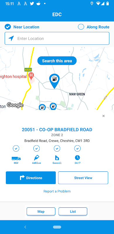 Kết quả tìm kiếm có thể được hiển thị dưới dạng danh sách hoặc chế độ xem bản đồ để bạn có thể có được bức tranh đầy đủ về các vị trí trạm nhiên liệu và đặt chỉ đường đến địa điểm gần nhất của bạn.
