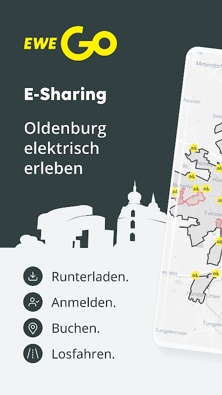 Bạn vừa mới đến bằng tàu hỏa và muốn đến cuộc hẹn tiếp theo? Nhanh chóng từ trường đại học đến thành phố? Cho dù bạn muốn chạy việc vặt hay hẹn hò, chia sẻ xe tay ga điện tử EWE Go là kết nối nhanh chóng của bạn ở Oldenburg. Đơn giản chỉ cần đặt một chiếc xe tay ga và sau đó yên tĩnh, không khí thải và thoải mái trên đường.