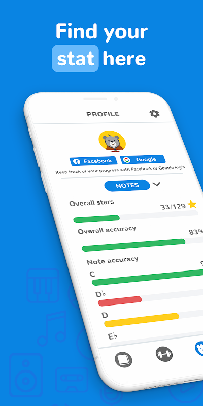 Bạn có thể tìm thấy stat của bạn ở đây. Kiểm tra độ chính xác ghi chú của bạn, những gì bạn giỏi và những gì cần cải thiện. Và theo dõi tiến trình của bạn với đăng nhập Facebook hoặc Google.