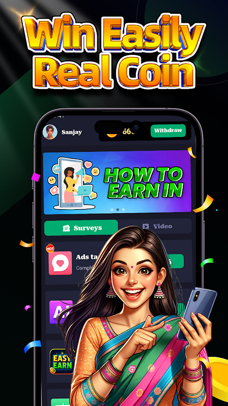 Kiếm tiền dễ dàng: kiếm tiền từ winmate giúp bạn tận dụng tối đa thời gian rảnh rỗi bằng những cách dễ dàng để kiếm được phần thưởng thực sự. Thực hiện các cuộc khảo sát nhanh, xem video ngắn, hoàn thành các nhiệm vụ đơn giản hoặc quay bánh xe may mắn - tất cả đều được thiết kế để giúp bạn thu thập tiền xu một cách dễ dàng và tận hưởng cuộc hành trình.
