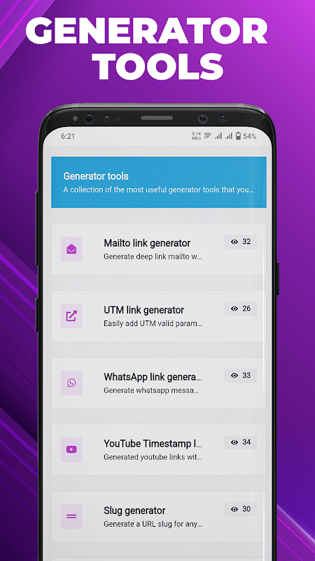 ⚙️ Công cụ tạo: Các công cụ tạo hữu ích nhất cho phép bạn tạo dữ liệu một cách dễ dàng. Từ trình tạo số ngẫu nhiên đến trình tạo mật khẩu, hãy tạo nhanh chóng những gì bạn cần.