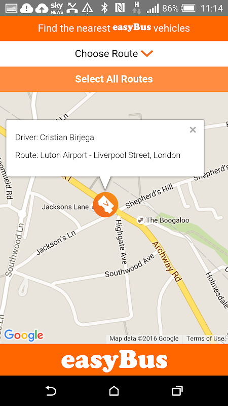 - see the exact route and driver who will be taking you on your journey by selecting the easyBus
