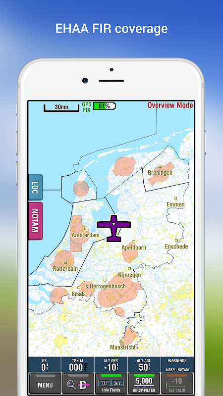 Ứng dụng EasyVFR Basic NL Legacy, cho phép phi công điều hướng an toàn trên bầu trời Hà Lan.