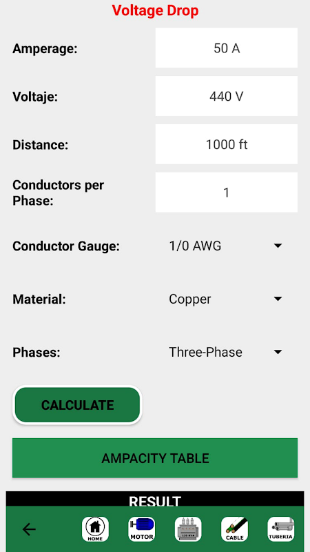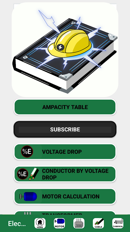 Với ứng dụng này, có thể tính toán mức lấp đầy ống dẫn, kích thước dây, cường độ dòng điện động cơ, cường độ dòng điện máy biến áp, cầu chì, cầu dao, sụt áp, kích thước dây dẫn dựa trên độ sụt áp và bao gồm một bảng hiển thị công suất cường độ dòng điện của các kích cỡ dây đồng và nhôm khác nhau .