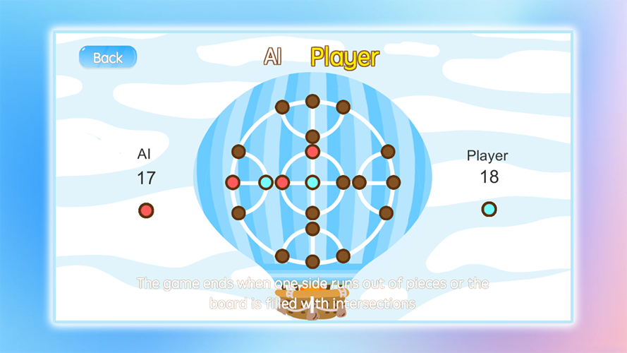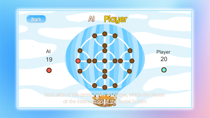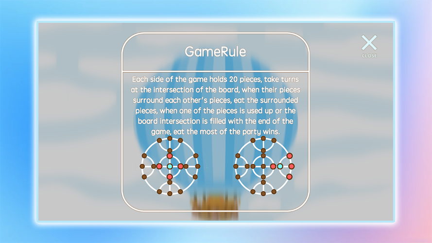 Eat War cho phép bạn trải nghiệm sức hấp dẫn vô tận của trò chơi trí tuệ. Khi bắt đầu ván cờ, mỗi bên cầm 20 quân cờ và lần lượt đặt chúng vào giao điểm của bàn cờ. Bạn cần bao vây quân cờ của đối thủ bằng cách bố trí khéo léo và phán đoán chính xác để “ăn” được chúng. Khi những khoảng trống trên bàn cờ giảm dần, sự căng thẳng cũng dần leo thang, mỗi nước đi đều có thể quyết định thắng thua cuối cùng.