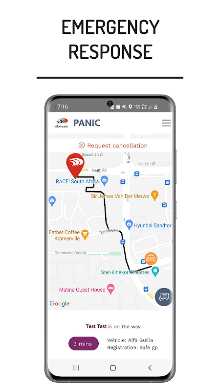 Chỉ cần nhấn nút báo động và phòng điều khiển của chúng tôi sẽ gọi lại cho bạn ngay lập tức để xác nhận tính chất trường hợp khẩn cấp của bạn, trong khi phương tiện phản ứng sẽ đến vị trí của bạn qua GPS.