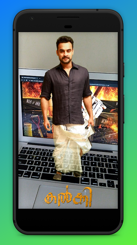 Using Kaki ECReality app, you can take a selfie with Tovino, no matter where you are and surprise your friends by sharing your selfie on Facebook. All you have to do is look at the official movie poster of Kalki through this app, and see real Tovino coming towards you to take a selfie with you.