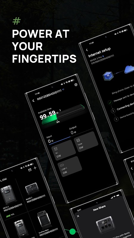Sử dụng ứng dụng EcoFlow để điều khiển và giám sát trạm điện EcoFlow, Bộ dụng cụ điện, v.v. Kết nối tất cả các thiết bị của bạn qua Bluetooth hoặc Wi-Fi để xem số liệu thống kê thời gian thực trong tầm tay bạn. Kiểm tra thông tin cơ bản, chẳng hạn như mức công suất và nguồn điện đầu vào hoặc tự nạp năng lượng bằng cách đặt mức sạc hoặc tốc độ sạc.