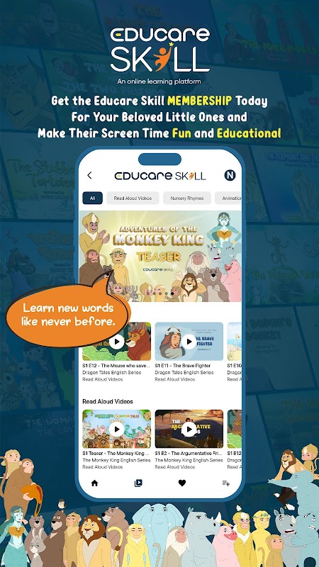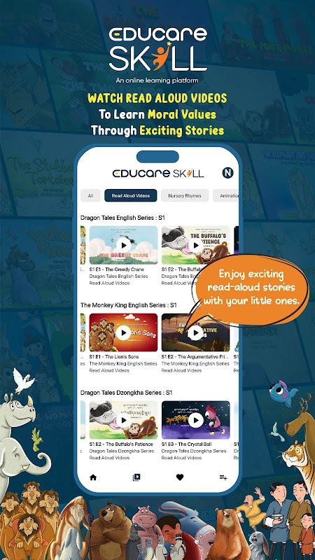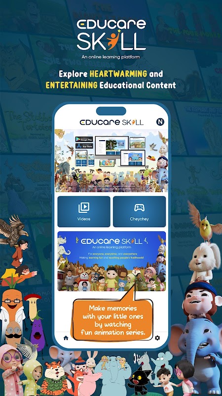 Bắt tay vào hành trình học tập với kho nội dung giáo dục và giải trí khổng lồ của Educare Skill, được tuyển chọn tỉ mỉ dành cho học viên nhỏ tuổi. Thích thú với các video đọc to, loạt phim hoạt hình hấp dẫn, những bài đồng dao hấp dẫn dành cho trẻ mẫu giáo và trải nghiệm học tập mang tính tương tác qua trò chơi.