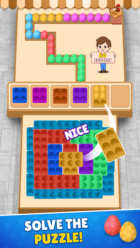 ✦ Đường đua trứng thực tế đầy thử thách và không gian chật hẹp để kiểm tra kỹ năng sắp xếp trứng của bạn