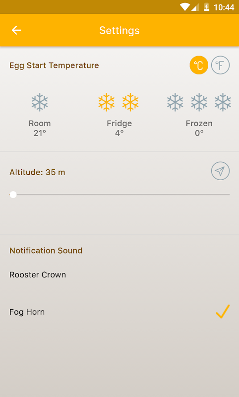 Select the temperature at which the egg is stored, and do not forget to add altitude.