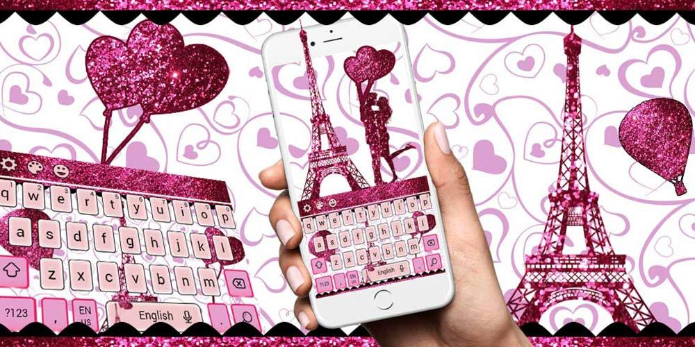 Giới thiệu về Eiffel Tower Pink Glitter Paris Keyboard Theme.