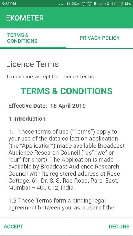 Bạn có thể được các đại diện của BARC Ấn Độ tiếp cận để trở thành một phần trong nhóm nghiên cứu của chúng tôi. Bằng cách cài đặt EkoMeter, trên máy tính bảng hoặc điện thoại thông minh, bạn đang phục vụ Ngành công nghiệp Ấn Độ trong việc hiểu hành vi của người tiêu dùng trong không gian kỹ thuật số theo cách tốt hơn. Bạn phải là thành viên tham gia hội thảo đã đăng ký để có thể đăng nhập vào Ứng dụng EkoMeter.