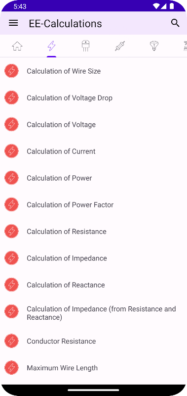 Ứng dụng này chứa các tính toán điện, tính toán điện tử, tính toán ánh sáng, tính toán động cơ và chuyển đổi.