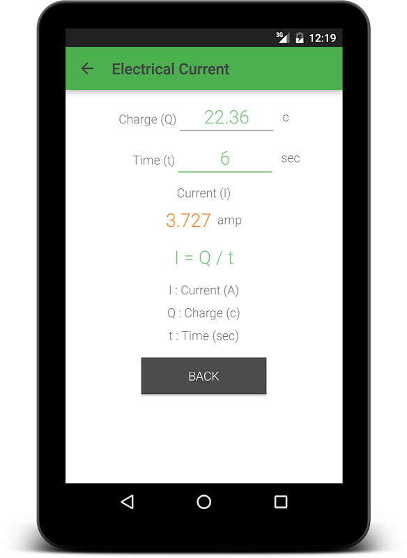 Bạn có thể tìm thấy công thức sau đây điện trong ứng dụng này: