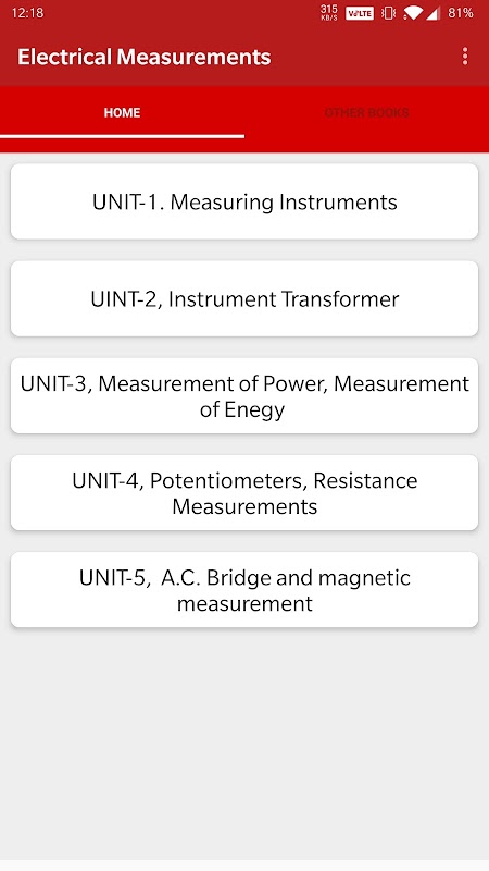 Nó bao gồm hơn 120 chủ đề về Đo lường Điện và Dụng cụ đo lường. Các chủ đề được chia thành 5 đơn vị.