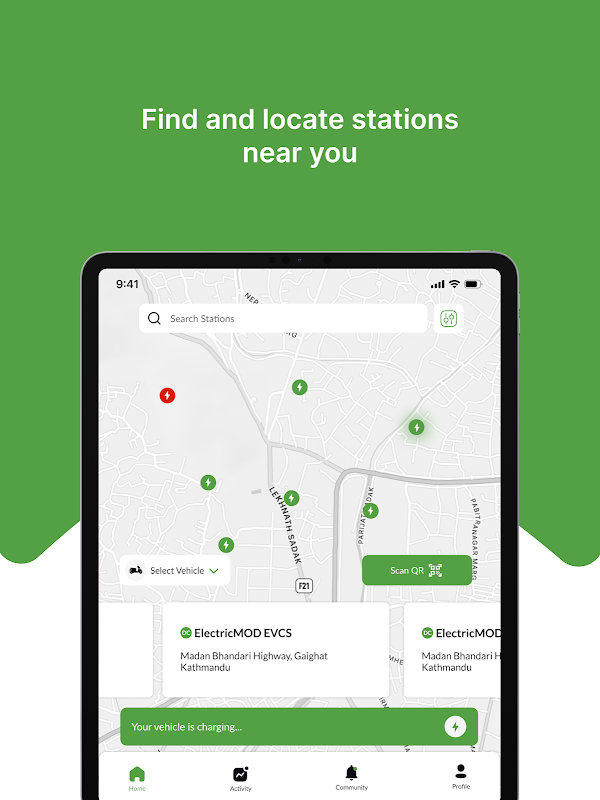 ElectricMOD sở hữu mạng lưới hơn 100 trạm sạc trên khắp Nepal, giúp bạn dễ dàng tìm được nơi sạc xe bất cứ lúc nào. Với ứng dụng đơn giản và thân thiện với người dùng, bạn có thể định vị trạm gần nhất và thanh toán chỉ với vài thao tác chạm.