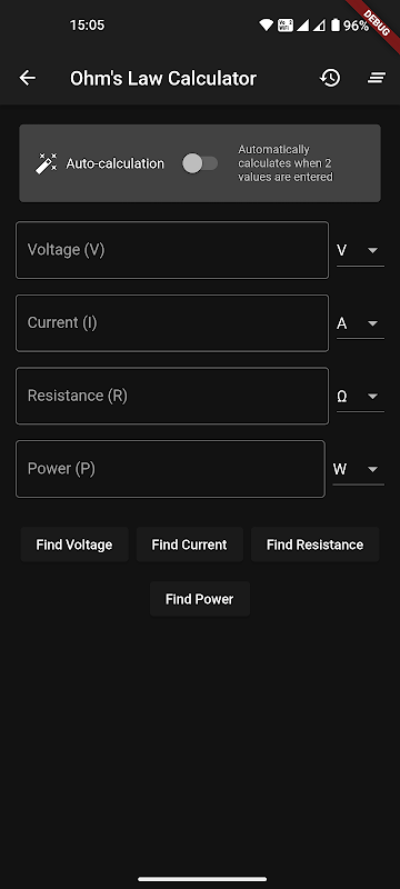 Máy tính định luật Ohm – Tính toán điện áp, dòng điện, điện trở và công suất tức thì