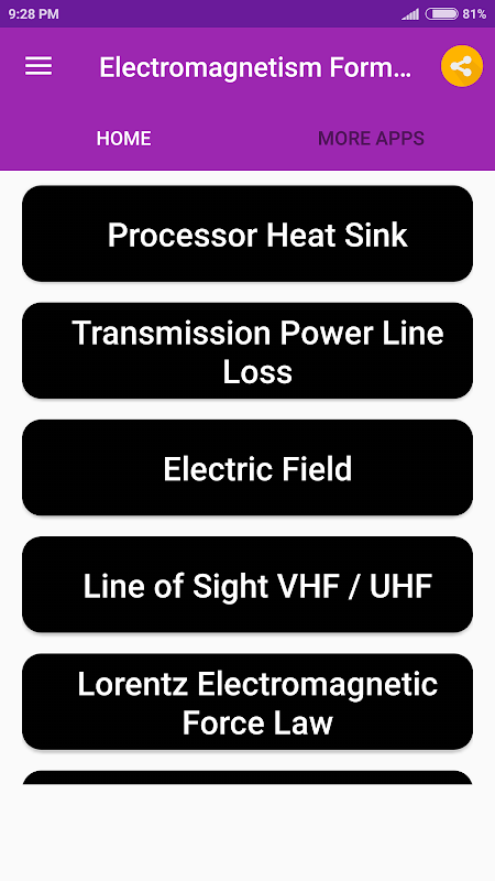 Ứng dụng liệt kê tất cả các công thức điện từ quan trọng. Nó rất hữu ích cho sinh viên để tiết kiệm thời gian quý giá.