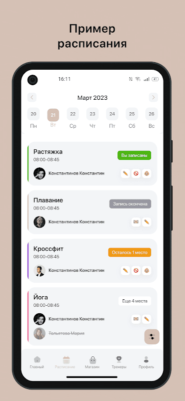 - Скорректированы статусы в "Моих записях" после регистрации на групповое или персональное занятие.