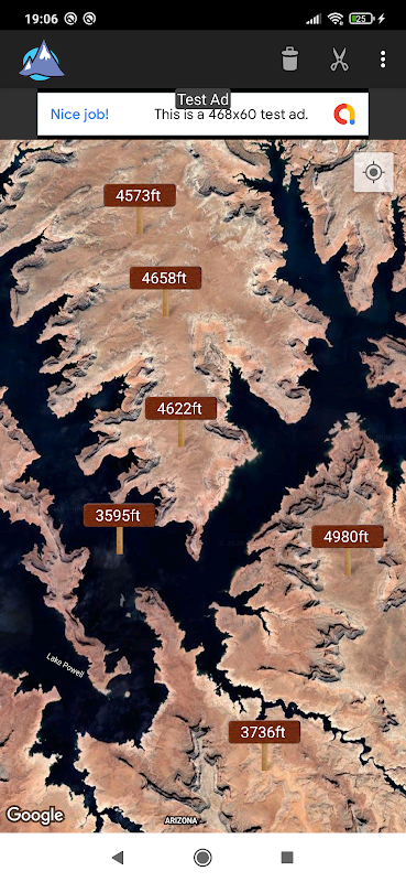 Put as many markers on the map as you like. Choose between metric and imperial elevation units. Altitude is shown for every point. It is possible to save and load points.