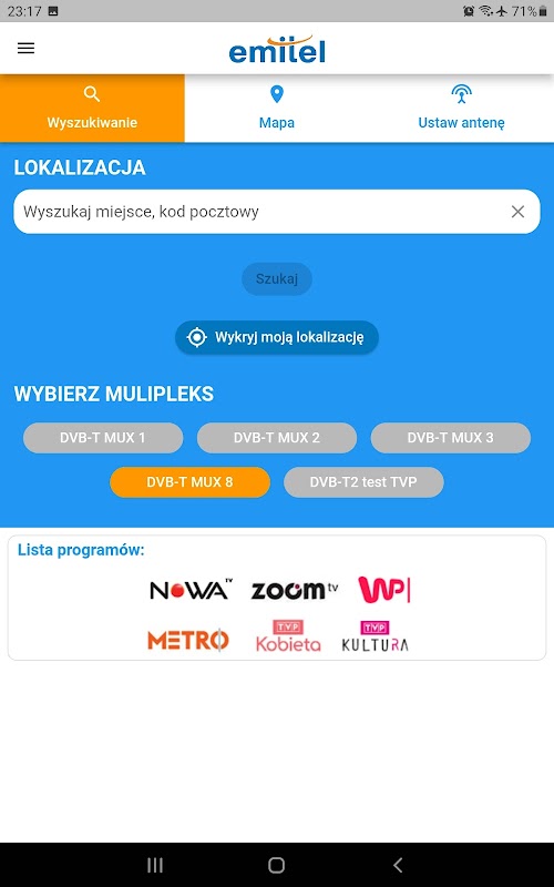 Ứng dụng "EmiMaps" hiển thị phạm vi ước tính của các chương trình phát sóng truyền hình kỹ thuật số mặt đất DVB-T do EmiTel thực hiện. Nó là một trợ giúp để ước tính khả năng nhận tín hiệu MUX-1, MUX-2, MUX-3 và MUX-8 tại một địa điểm nhất định trong quốc gia, cũng như việc lựa chọn, lắp đặt và định hướng ăng-ten thu TV.