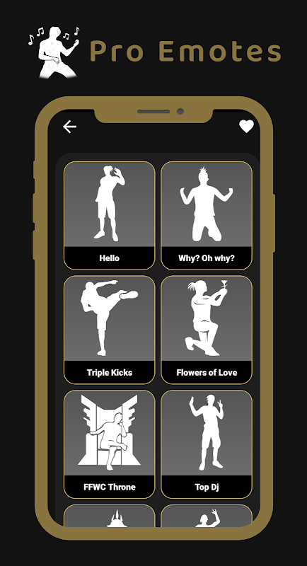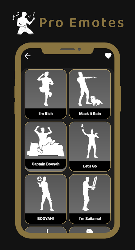 rất dễ sử dụng. Chúng tôi đã tạo các danh mục khác nhau với các điệu nhảy và biểu tượng cảm xúc chính của battle royale. Trong mỗi người trong số họ, bạn có thể thấy tất cả các điệu nhảy và biểu tượng cảm xúc của danh mục, tên của điệu nhảy và ảnh bìa chính của nó để bạn có thể biết được điệu nhảy đó như thế nào.