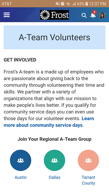 · A-Team volunteer activities – view a calendar of events for your region and sign up as a volunteer