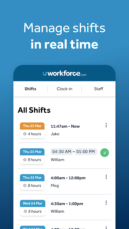 Nhận thông báo về nhân viên sắp đến và ai đang làm việc ở đâu. Nhận thông báo khi nhân viên đồng hồ và thực hiện các thay đổi đối với bảng chấm công nếu cần.