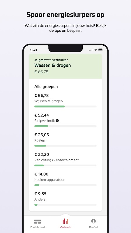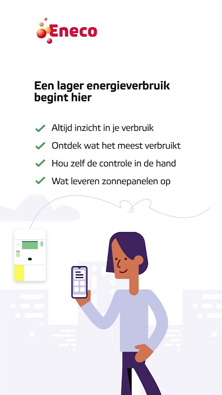 Bạn có phải là khách hàng của Eneco ở Flanders và bạn có đồng hồ kỹ thuật số không? Nhận thông tin chi tiết thực sự về mức tiêu thụ năng lượng của bạn nhờ ứng dụng Eneco Smart Meter. Chúng tôi cho bạn thấy chính xác số tiền bạn sử dụng và chi phí. Bạn cũng sẽ biết liệu mình có sử dụng nhiều năng lượng hơn khi giặt, sưởi hoặc nấu ăn hay không. Với ngân sách hàng tháng, bạn kiểm soát chi phí năng lượng của mình. Chúng tôi tính toán xem bạn có đang làm tốt hay không dựa trên mức tiêu thụ thực tế của bạn.